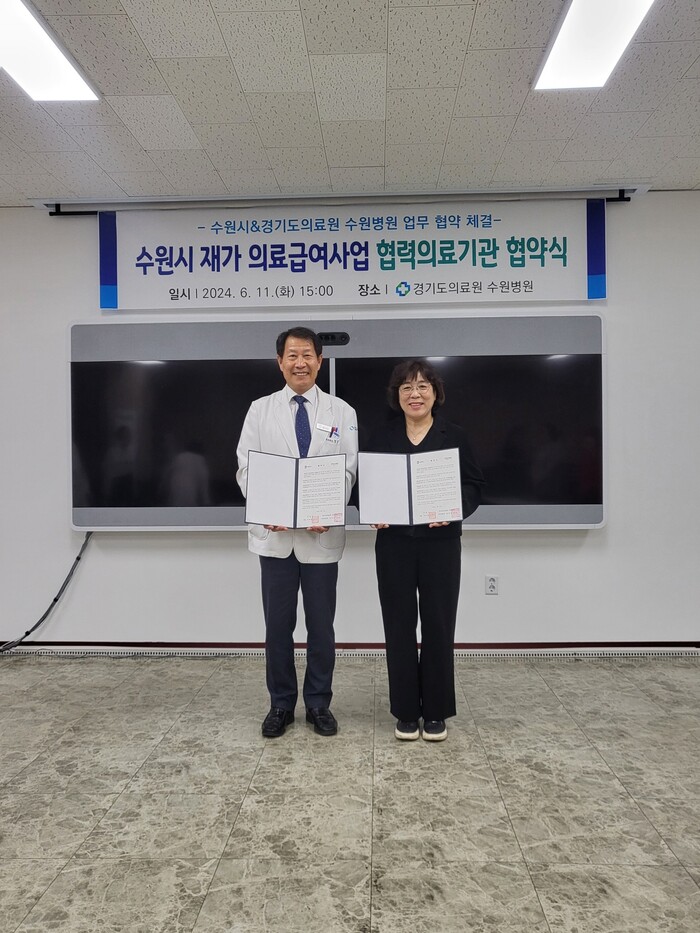 수원시(시장 이재준)가 11일 경기도의료원 수원병원과 재가 의료급여사업 협력의료기관 협약을 체결하고, 협력관계를 구축했다.