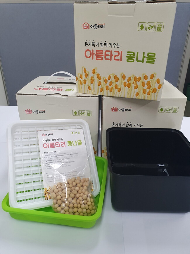 이번에 제공하는 콩나물 재배키트는 마을기업 잔다리마을공동체의 콩과 함께 제공해 직접 아이들이 콩나물을 재배할 수 있으며, 향후 콩만 추가로 구매하여 지속적으로 사용할 수 있다.