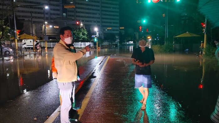 [로컬라이프] 송준형 기자 = 최대호 안양시장은 8일부터 쏟아진 기록적 폭우가 밤사이에도 강하게 이어져, 새벽까지 현장을 다니며 침수지역과 피해지역을 순찰했다.