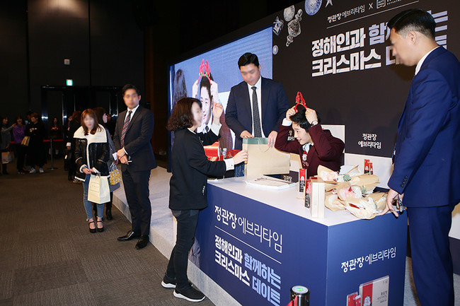 이번 행사는 배우 정해인이 ‘정관장 에브리타임’ 모델로 선정된 이후 고객들과 직접 만나 소통한 첫 번째 행사로 연말연시와 크리스마스를 맞이해 올 한해 고객들이 보내준 성원에 보답하기 위해 마련됐다.