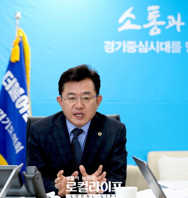 "이재명 지사가 유력한 대권후보로 언급되고 있는 것은 엄연한 현실이고, 외면할 수 없는 문제다. 그렇기 때문에 대권주자로서 여러 현안 문제와 관련된 의견을 피력하는 것에 대해 의회에서 왈가불가할 수는 없다고 생각한다. 이와 관련하여 대표단은 절대적으로 중립을 지키면서 정치가 아닌 민생정책을 중심으로 집행기관과 함께 사업들을 발굴하고 시행할 계획이다. 작년에 일정 정도 성과를 거두었던 정책협의회와 실무기구인 정책조정회의를 중심으로 협치를 더욱 강화하고, 코로나19로 힘들어하는 도민들을 위한 민생정책에서 성과를 내겠다. 또한, 도민의 민생에 반하는 도정에 대해서는 견제의 끈을 절대 놓지 않을 예정이다."