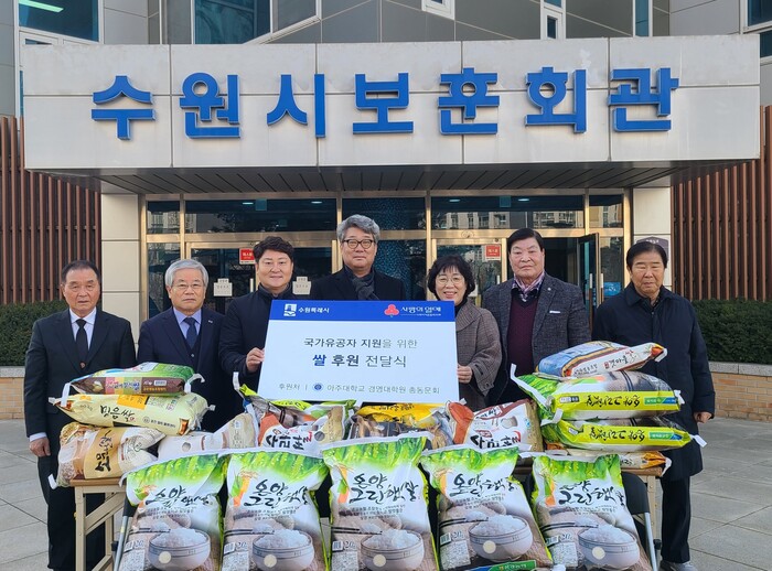 아주대학교 경영대학원 총동문회가 “수원시 보훈회관을 이용하는 국가유공자에게 전달해 달라”며 쌀 53포대(1포대 10㎏)를 기부했다.