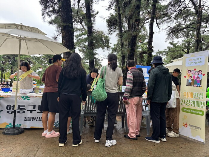 수원시 치매안심센터가 19일 연무동 반딧불이시장, 20일 매탄공원에서 치매인식개선 캠페인을 펼쳤다. 이번 캠페인에는 장안구보건소와 영통구보건소 관계자, 지역 주민 참여했다.