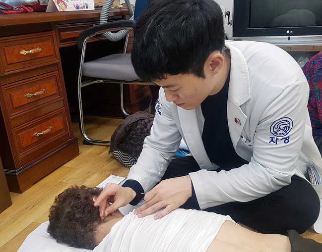 <사진/ 자생한방병원 최성률 한의사가 침치료를 실시하고 있다>