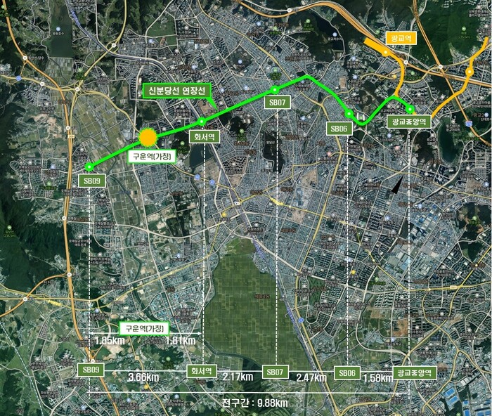 ‘신분당선 광교~호매실 구간 연장 사업’ 노선에 ‘구운역’이 신설된다.