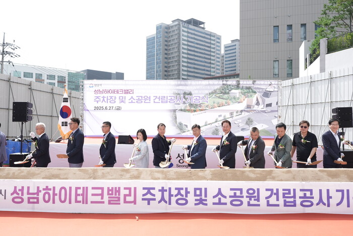 성남시(시장 신상진)는27일 오후2시30분,중원구 상대원동252-5번지 일원에서‘성남하이테크밸리 주차장 및 소공원 건립공사 기공식’을 개최했다.