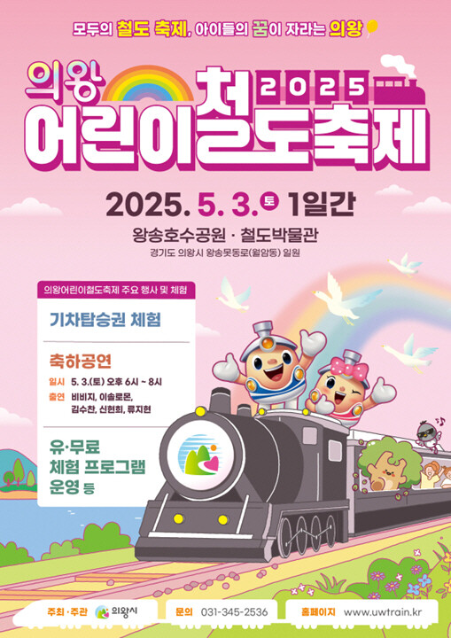 의왕시의 대표축제인 의왕어린이철도축제가 오는 5월 3일 의왕왕송호수공원과 철도박물관 일대에서 개최된다.