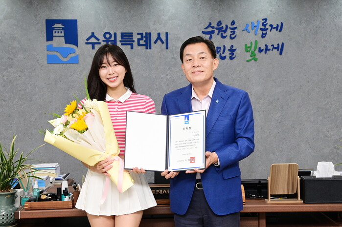 이재준 수원시장은 10일 집무실에서 안지현 치어리더에게 위촉장을 수여했다.
