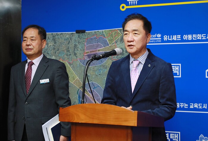 [로컬라이프] 정장선 평택시장은 중앙정부, 공군, 주한미군에 미군기지 주변 고도 제한을 완화해 줄 것을 요청하는 호소문을 16일 발표했다.