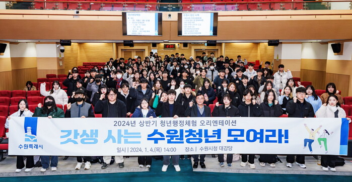 수원시가 4일 시청 대강당에서 ‘2024 상반기 수원시 청년행정체험’ 참여자를 대상으로 오리엔테이션을 열었다.