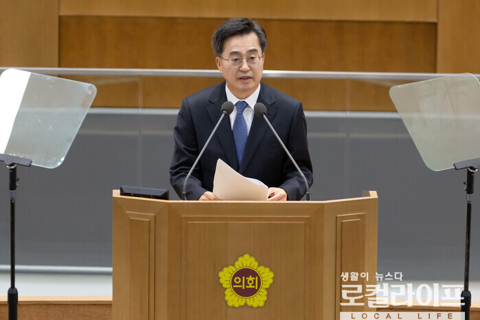 | ▲ 김동연 경기도지사가 12일 오전, 경기도의회 본회의장에서 열린 '경기도의회 제382회 임시회 제2차 본회의'에 참석해 도정 연설을 하고 있다. (사진제공=경기도) |