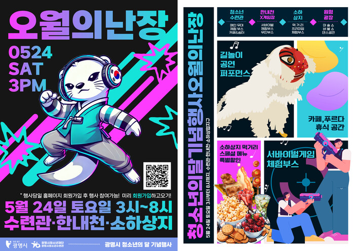 광명시(시장 박승원)는 오는 24일 오후 3시 청소년의 달을 맞아 대표 청소년 축제인 ‘오월의 난장(場)’을 광명시청소년수련관 주차장과 한내천, 소하상업지구 일대에서 개최한다.