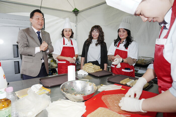 사진/2023 수원음식문화박람회를 찾은 이재준 수원시장이 참가자들을 만나고 있다.(사진제공=수원시)