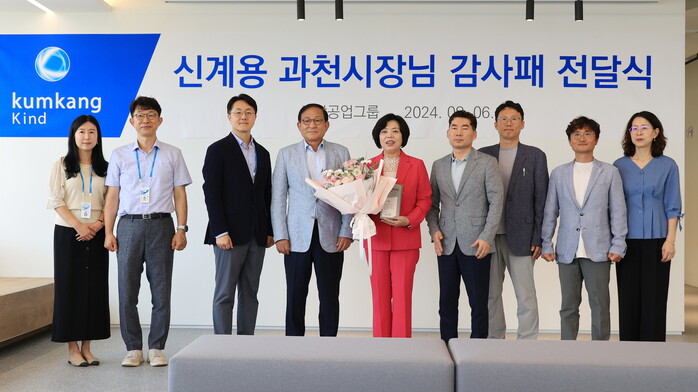 금강공업에서는 이날 해당 사옥 신축에 있어 건축허가에서부터 사용승인 절차에 이르기까지 모든 과정이 원활하게 진행될 수 있도록 지원해 준 과천시에 감사의 뜻을 표하며 신계용 과천시장에게 감사패를 전달했다.