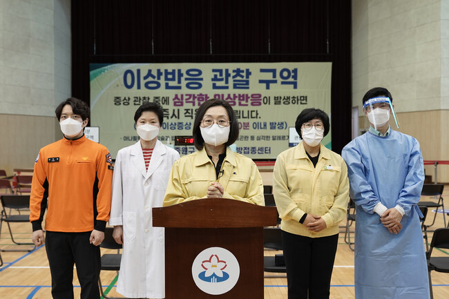 이날 은수미 성남시장은 오늘부터 예방접종이 추가로 시작되는 중원구 소재 성남종합운동장 스포츠센터 다목적체육관 현장에서 온라인 긴급 브리핑을 열고 이와같이 밝혔다.