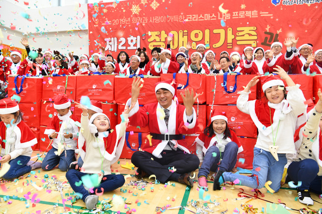 2회째 맞는 「장애인 가족과 나누美 산타축제」는 지역 내 장애인 가정에 풍성한 성탄절 및 따뜻한 겨울나기를 돕고자 김상호 하남시장, 이현재 국회의원, 방미숙 시의장, 운영교회인 미래를사는교회 임은빈 목사와 장애인단체장 및 유관기관 단체장, 아이테코 기업인협의회대표, 지호한방삼계탕대표 등을 비롯해 약 100여명의 후원자, 봉사자들이 참가한 가운데 성황리에 마쳤다.