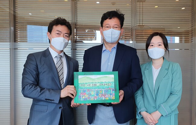 [로컬라이프] 김종천 과천시장은 22일 오전, 이소영 의원과 함께 더불어민주당 송영길 대표를 만나 청사 일대 주택 공급 문제 해결에 대한 당 차원의 협조를 요청했다고 말했다.