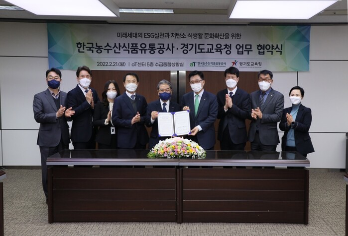 경기도교육청(교육감 이재정)과 한국농수산식품유통공사(사장 김춘진)는 21일 ‘미래세대 지속가능한 저탄소 식생활 실천과 ESG실천 문화 확산’을 주제로 업무협약을 체결했다.