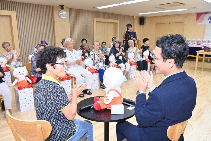 하남시(시장 이현재)가 홀로 사는 어르신들의 외로움과 치매, 고독사 등을 방지하고 안정적인 일상 케어를 돕기 위해 전달한 AI 건강관리 로봇 하남이를 마주한 어르신들이 연신 감탄사를 내뱉으며 높은 만족감을 나타냈다.