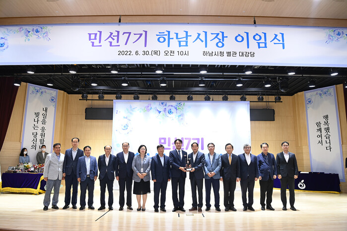 하남시는 30일 시청 별관 대강당에서 민선7기 김상호 시장에 대한 이임식을 열고, 직원 및 각계 인사 등과 함께 송별의 시간을 가졌다.