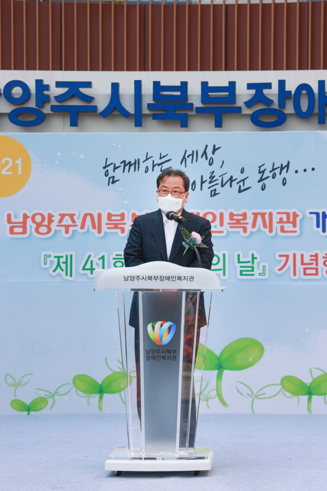 조광한 남양주시장은 기념사를 통해 “북부장애인복지관 개관과 제41회 장애인의 날을 진심으로 축하드린다.”라며 “남양주시는 ‘함께하는 세상, 아름다운 동행’이라는 행사 주제처럼 장애와 비장애 구별 없이 모두가 함께하는 세상을 만들기 위해 힘쓰며 장애인의 성장과 발달을 위한 최첨단 인프라를 구축하기 위해 더욱 노력하겠다.”라고 전했다.