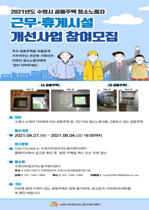 수원시가 ‘공동주택 청소원·중소기업 노동자 휴게시설 개선사업’을 시작한다.