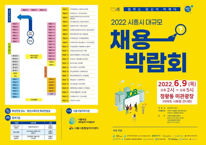 시흥시(시장임병택)는 오는 6월 9일 오후 2시부터 오후 5시까지 정왕동 이마트 앞 미관광장에서 『2022 시흥시 대규모 채용박람회』를 개최해 시민들의 일자리 고충을 해결한다.