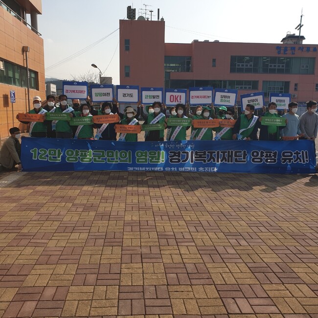 한편, 군에서는 지역주민 의견수렴회를 통해 경기복지재단을 양평군에 유치하고자 하는 군민의 뜻을 확인하고, 지난 12일 경기복지재단 유치 선포식을 통해 군의 의지를 대내외적으로 표명했으며, TF팀과 범군민 추진단을 구성, 온·오프라인을 통한 범군민 서명운동, 각종 사회단체의 퍼포먼스 릴레이 등 적극적인 유치 활동을 전개하고 있다.