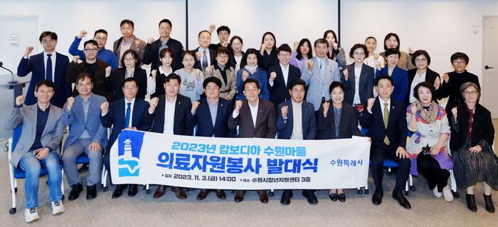 수원시 장안구보건소, 아주대학교병원, 화홍병원, 수원시 의사회·치과의사회·한의사회·약사회·간호사회·안경사회, 경기도 간호조무사회·물리치료사회, 시의원(복지안전위원회) 등 39명으로 구성된 ‘캄보디아 수원마을 의료봉사단’이 출범했다.