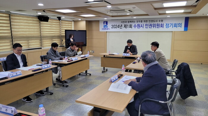 수원시 인권위원회는 5일 수원시의회 세미나실에서 ‘2024년 제1회 정기회의’를 열고, ‘제3차 수원시 인권정책 기본계획’을 심의·자문했다.