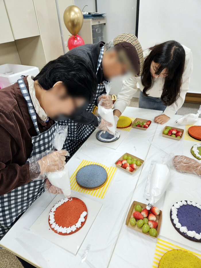 사진/행사 참석자들이 크리스마스 케이크를 만들고 있다.(사진제공=수원시)