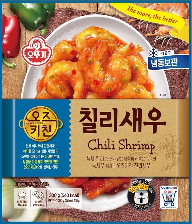 오뚜기 관계자는 "특제 칠리소스로 맛을 낸 ‘오즈키친 칠리새우’를 출시했다”며 “겉은 바삭하고 속은 촉촉한 통새우 튀김을 간편하게 즐길 수 있을 것”이라고 밝혔다.
