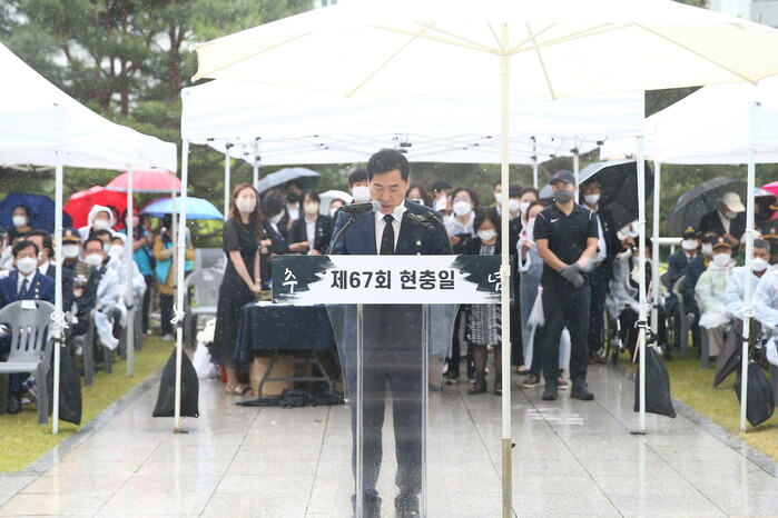의왕시는 지난 6일 의왕시 현충탑에서 국가유공자, 보훈가족, 기관‧단체장 등 400여 명이 참석한 가운데 ‘제67회 현충일 추념식’을 개최했다.