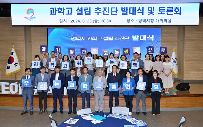 평택시와 평택교육지원청은 8월 23일 평택시청 대회의실에서 “평택시 과학고 설립 추진단 발대식 및 토론회”를 개최했다.