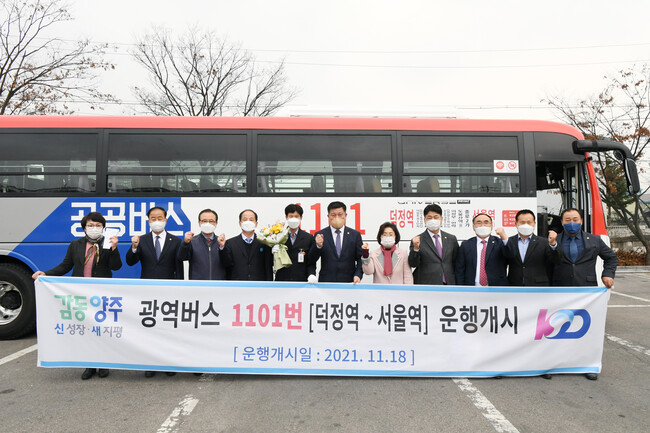 국토교통부 대도시권광역교통위원회의 광역버스 준공영제 사업으로 선정된 1101번 광역버스는 18일 지역주민의 출퇴근 이용 편의 향상을 위해 운행을 개시했다.