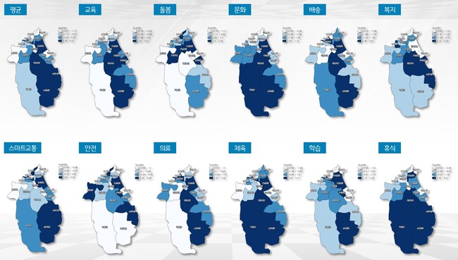 빅데이터 분석 결과에 따르면 시의 지리적 중심을 포함한 남동부 권역이 북서부 권역보다 전반적으로 생활SOC 역량이 양호한 것으로 나타났다.