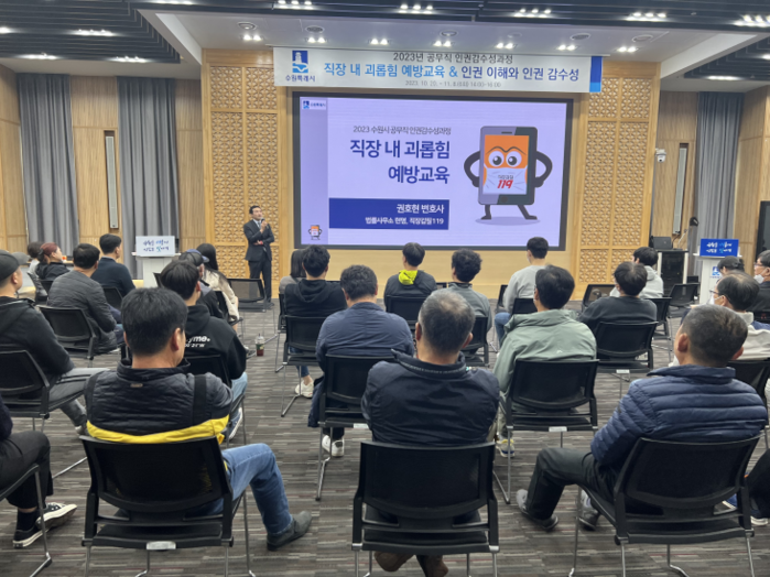 사진/지난 10월 20일 열린 직장 내 괴롭힘 예방 교육이 진행되는 모습.(사진제공=수원시)