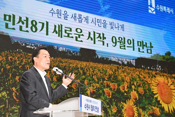 사진/ 이재준 수원시장이 9월의 만남에서 발언하고 있다.(사진제공=수원시)