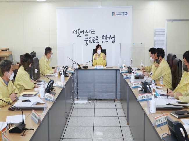 이날 회의는 지난달 단계적 일상회복으로 전환된 후 전국적으로 확진자가 증가하는 가운데 최근 안성시에서도 1주일 평균 확진자 수가 10명을 넘어서고, 이날에만 역대 최대치인 51명의 확진자가 발생했는데 기존 확진자와 다른 양상(학교, 어린이집, 공장 등)을 보이고 있어 시민들의 방역 긴장감을 높이고 체계적인 코로나19 방역대책을 추진하기 위해 긴급 소집됐다.