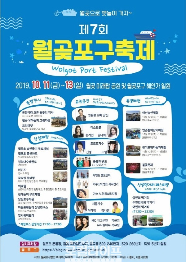 [시흥=로컬라이프] 임현상 기자 = ‘제7회 월곶포구축제’가 오늘(11일)부터 13일까지 사흘간 월곶 미래탑 공원과 해안가 월원에서 “월곶으로 뱃놀이 가자”를 주제로 개최된다.