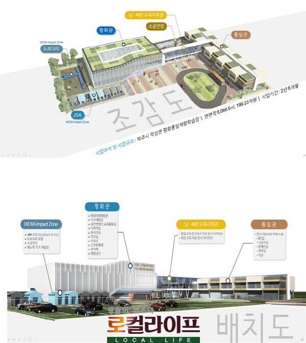 한반도 평화 시대를 준비하는 차원에서 건립이 추진되는 ‘평화·통일교육센터’는 현재 파주시 적성면에 소재한 평화통일체험학습장 부지 1만 6130㎡(4879.3평)에 지상 2층 건물 2동으로 연면적 6068.5㎡(1835.7평)을 건립한다. 공사 규모는 200억 원이며 2023년 9월 개관이 목표다.