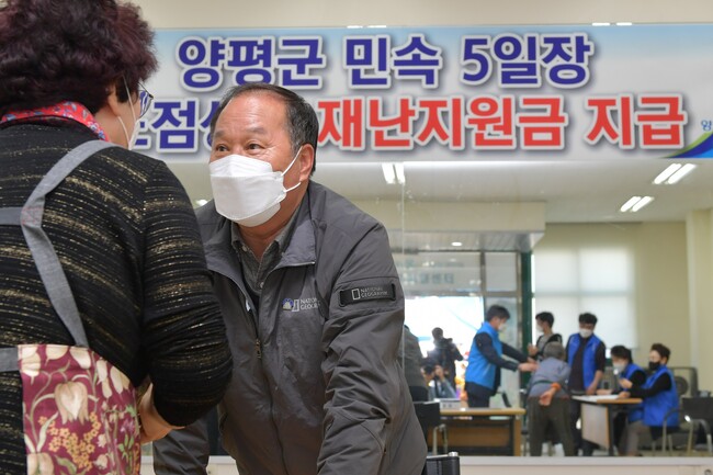 사진/양평군 민속5일장 노점상 재난지원금 지급(사진제공=양평군)