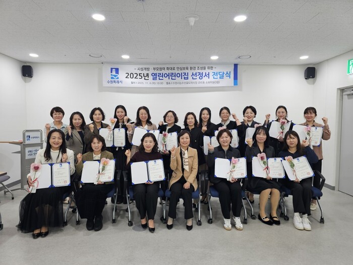 수원특례시(시장 이재준)는 6일 수원시농수산물도매시장 회의실에서 ‘2025 열린어린이집 선정서 전달식’을 열고, 신규 선정된 열린어린이집 23개소에 선정서를 전달했다. 올해 유지(재선정) 대상열린어린이집 57개소는 각 구청에서 전달한다.
