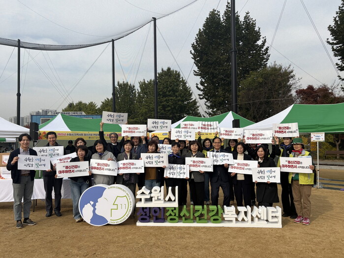 사진/정신건강 유관기관 관계자들이 기념촬영을 하고 있다.(사진제공=수원시)