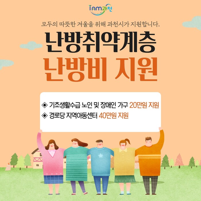 이날 신 시장은 자신의 페이스북을 통해 최근 연이은 한파와 난방비 인상으로 취약계층의 어려움이 가중되고 있다며, 과천시는 난방 취약계층의 피해 최소화를 위해 자체 예산을 편성해 경기도 지원 사업에 해당되지 않는 관내 수급가구 210곳에 월동 난방비 20만 원씩을 추가 지원한다고 전했다.
