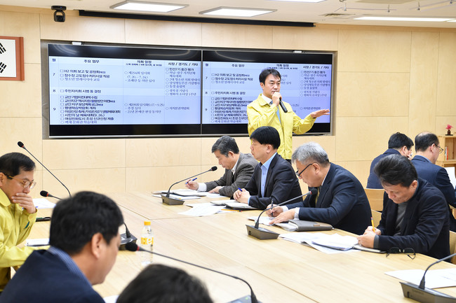 [하남=로컬라이프] 송준형 기자 = 김상호 하남시장은 지난 13일 상황실에서 개최한 주간정책회의에서 회의를 주재하고 하남시가 가야될 방향에 대해 부서 간 공감형성 및 협업을 강조했다.