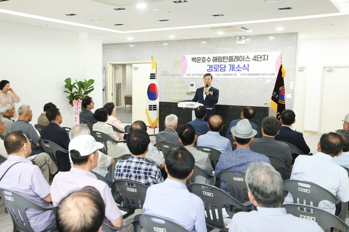 이번에 문을 연 경로당은 단지 내 피트니스 센터 옆 1층에 위치하고 있으며, 입주자대표회에서 TV, 냉장고, 주방기구, 소파 등을 지원했다.