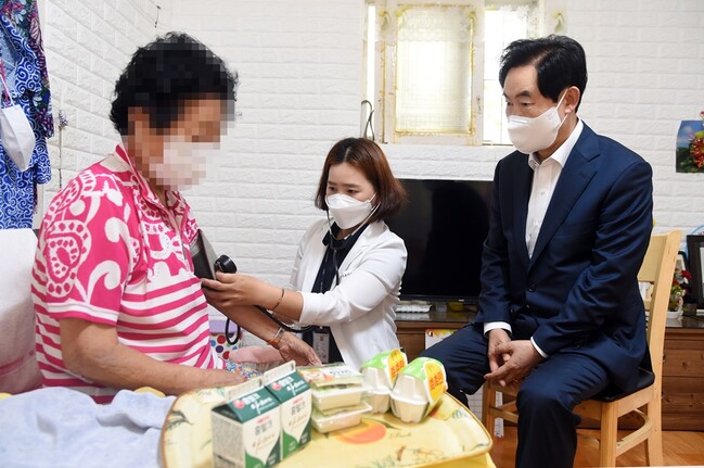 안병용 의정부시장은 8월 13일 연일 지속되는 폭염 속에 방문건강관리 대상자인 독거 가정을 방문해 어르신의 안부를 확인하고 폭염속 건강관리 수칙 및 코로나19 방역수칙 준수 등을 당부했다.