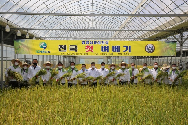 “임금님표이천”쌀의 본 고장 이천시(시장 엄태준)가 주관하고, 호법농업협동조합 주최로 열린 이날 첫 벼베기 행사는 연동하우스 (면적 892㎡)에 극조생종(백일미)의 품종이 심어졌다.