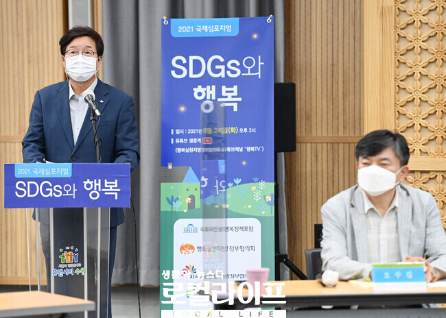 [로컬라이프] 송준형 기자 = ‘2021 지속가능발전목표(SDGs)와 행복 국제 심포지엄’이 ICLEI(지속가능성을 위한 세계 지방정부협의회) 한국사무소와 ‘국회 국민총행복 정책포럼’, ‘지속가능발전 지방정부협의회’ 공동 주최로 24일 개최됐다.
